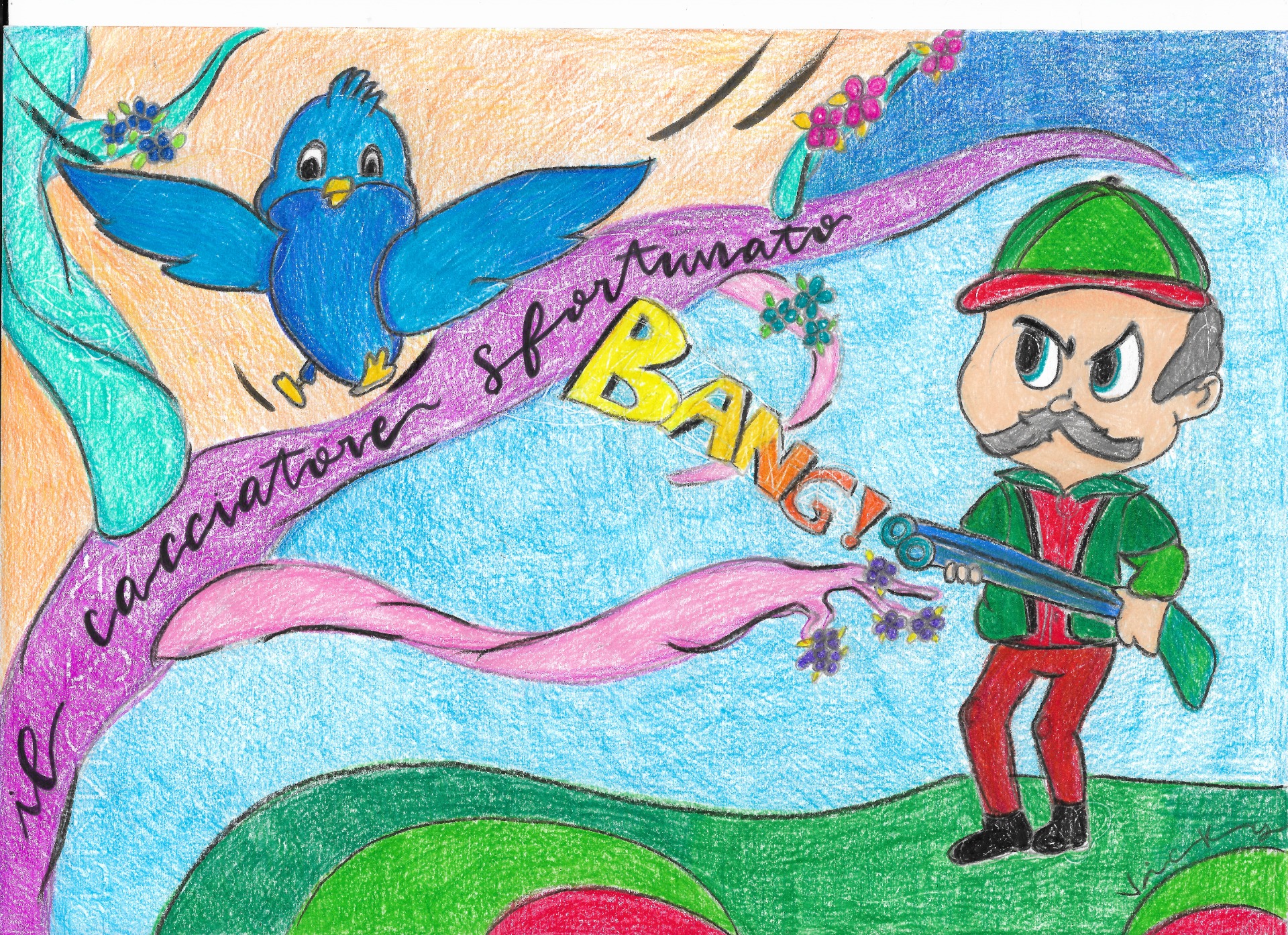 "Il cacciatore sfortunato" rappresentata da: Vittoria P., Beatrice.