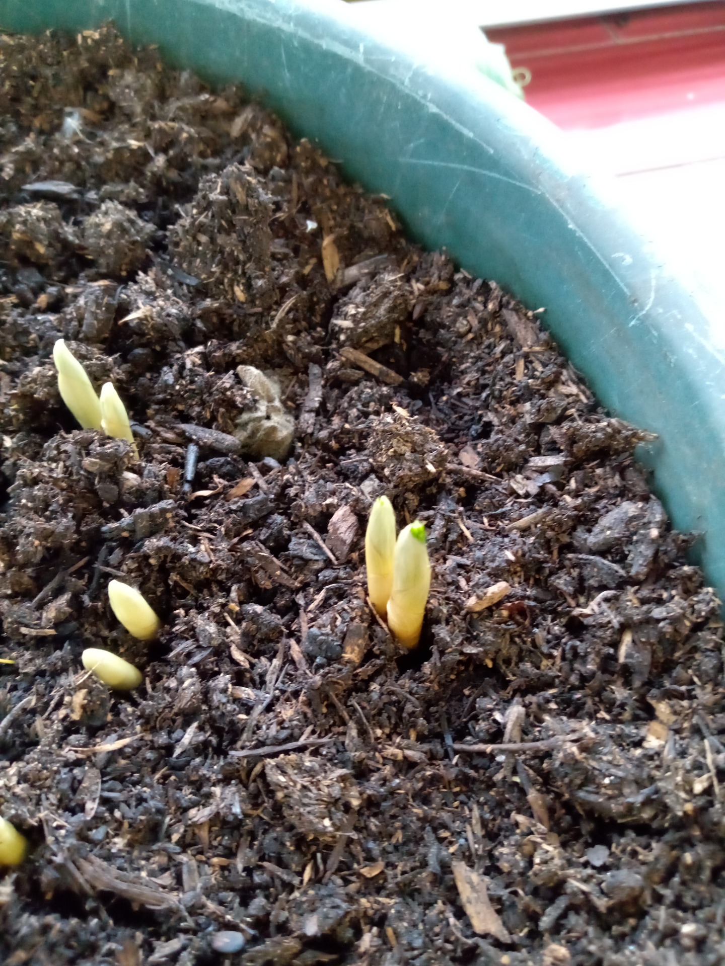 Noi li abbiamo piantati in un grande vaso, che abbiamo posto nell'atrio della scuola e ora aspettiamo la loro fioritura.